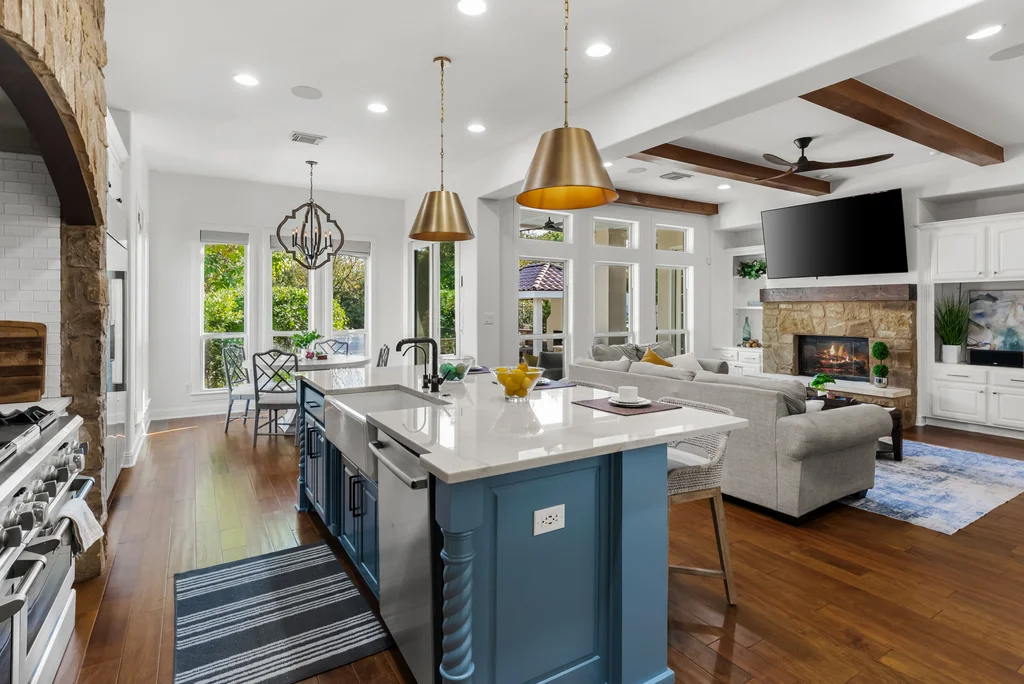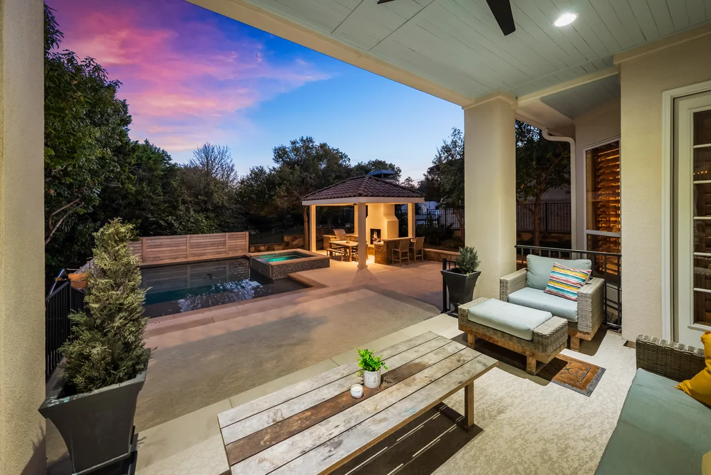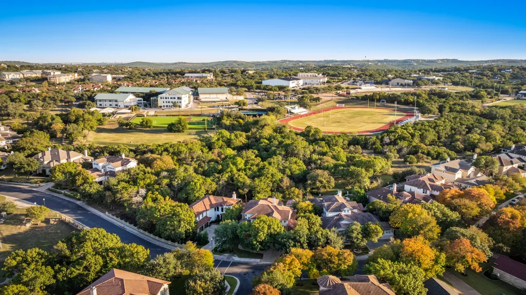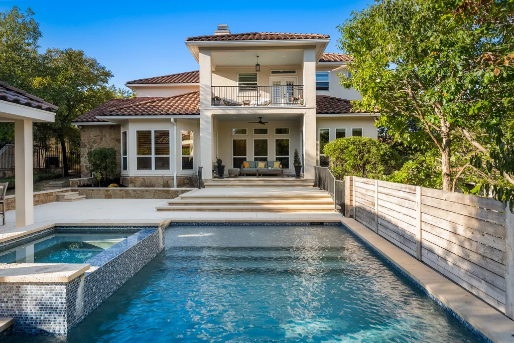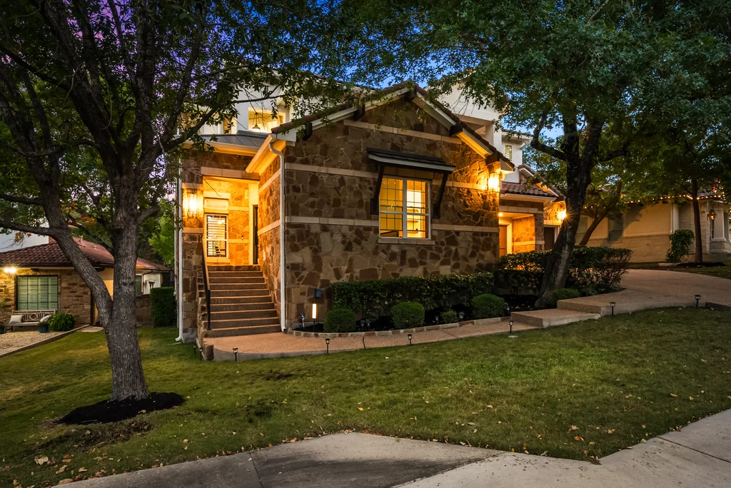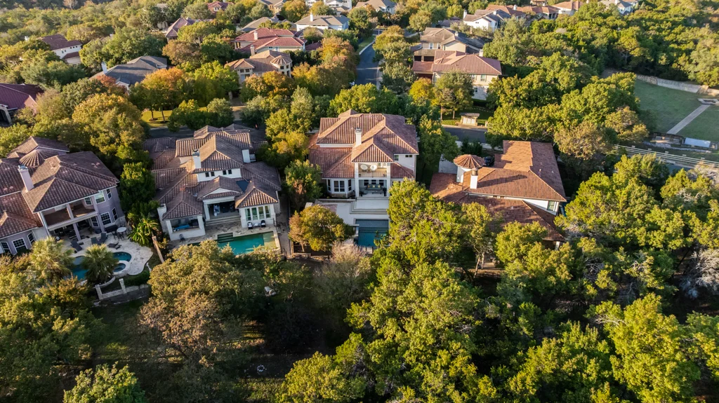 Nestled in the prestigious gated community of Barton Creek, this exceptional 5-bedroom + office updated home blends luxury, flexibility, and timeless appeal in one of Austin’s most sought-after communities. Within walking distance of St. Michael’s Schools and conveying with a mandatory Barton Creek Country Club Social Membership, this home offers the best of the Barton Creek lifestyle. Effortless entertaining is yours in this spacious home, as a large family room with a stone fireplace flows beautifully to a formal dining room and an open chef’s kitchen showcasing a large island, a six-burner gas stove with griddle, a range hood framed by a charming stone arch, and three ovens. A spacious main-level primary suite includes private patio access and a spa-inspired bath with dual cedar walk-in closets, a soaking tub, and a separate shower. Flexibility abounds for home offices, guests, and multi-generational living with two additional main-level rooms. An office at the entry foyer includes elegant built-in bookcases, a cedar closet, and an en suite bathroom. A separate entrance off the front porch leads to a bedroom or office with its own cedar closet and en suite. Upstairs, a second living area opens to a covered balcony overlooking the backyard. This room includes a wet bar, sink, mini fridge, and extra cabinetry for storage. Two of the three upstairs bedrooms open to a front balcony, and all have cedar closets. A media room offers a cozy space for everyone to relax. A lavish pool, hot tub, and sun deck await in the backyard oasis, which includes an outdoor kitchen, inviting fireplace, grill, mini fridge, and bar seating. Enjoy peaceful views of Stratus-owned acreage, and step through a rear gate for access to this ample greenspace. The home also includes a three-car garage with an epoxy floor, plus a reverse osmosis water softener. Special Financing Incentives available on this property from SIRVA Mortgage. See Sirva Mortgage Incentive Flyer in MLS files.